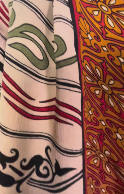 In Eastern philosophy, an Avatar is an incarnation that teaches how to evolve virtues of the past into the present. The Pure Upcycled Silk Avatar Collection is made from vintage pure silk saris, chosen and worn by women in the past to celebrate their lives. If you look very closely, you will see that the silks in this collection show some of the character of their previous incarnations through the appliqués that have been lovingly applied to bring new life to the fabric. This piece is a reminder that we are part of a collective journey to which we all add a little something.