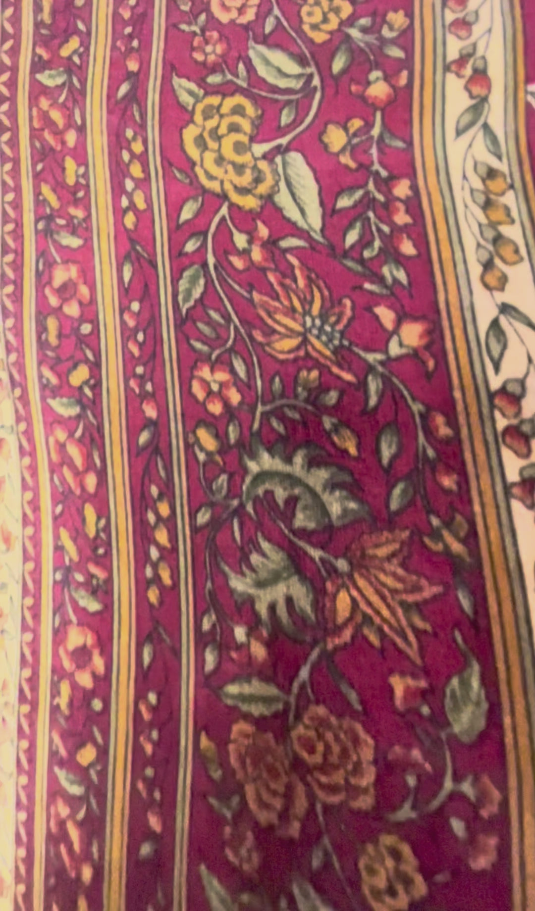 In Eastern philosophy, an Avatar is an incarnation that teaches how to evolve virtues of the past into the present. The Pure Upcycled Silk Avatar Collection is made from vintage pure silk saris, chosen and worn by women in the past to celebrate their lives.If you look very closely, you will see that the silks in this collection show some of the character of their previous incarnations through the appliqués that have been lovingly applied to bring new life to the fabric. This piece is a reminder that we are part of a collective journey to which we all add a little something.