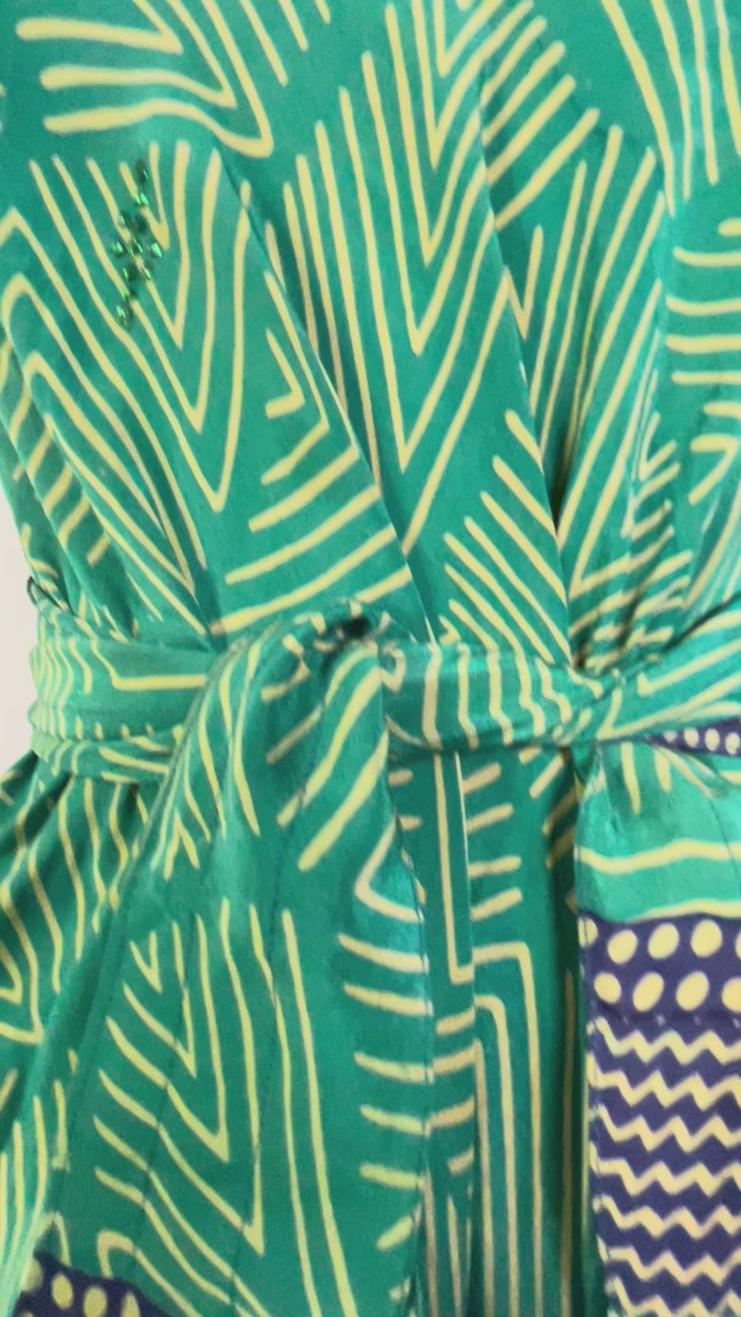 In order to extend the life of our gorgeous silks, we use small patches to camouflage the unavoidable fabric issues that arise from using upcycled fabrics. Most of our regularly-priced pieces will have some patching, but if there is more patching than we think is reasonable or if the patching is combined with another fabric issue, we will add the piece to our wabi sabi collection. Patching can be mild, moderate or significant. Please see the images and video attached to the wabi sabi piece that interests you for patches on that particular piece.