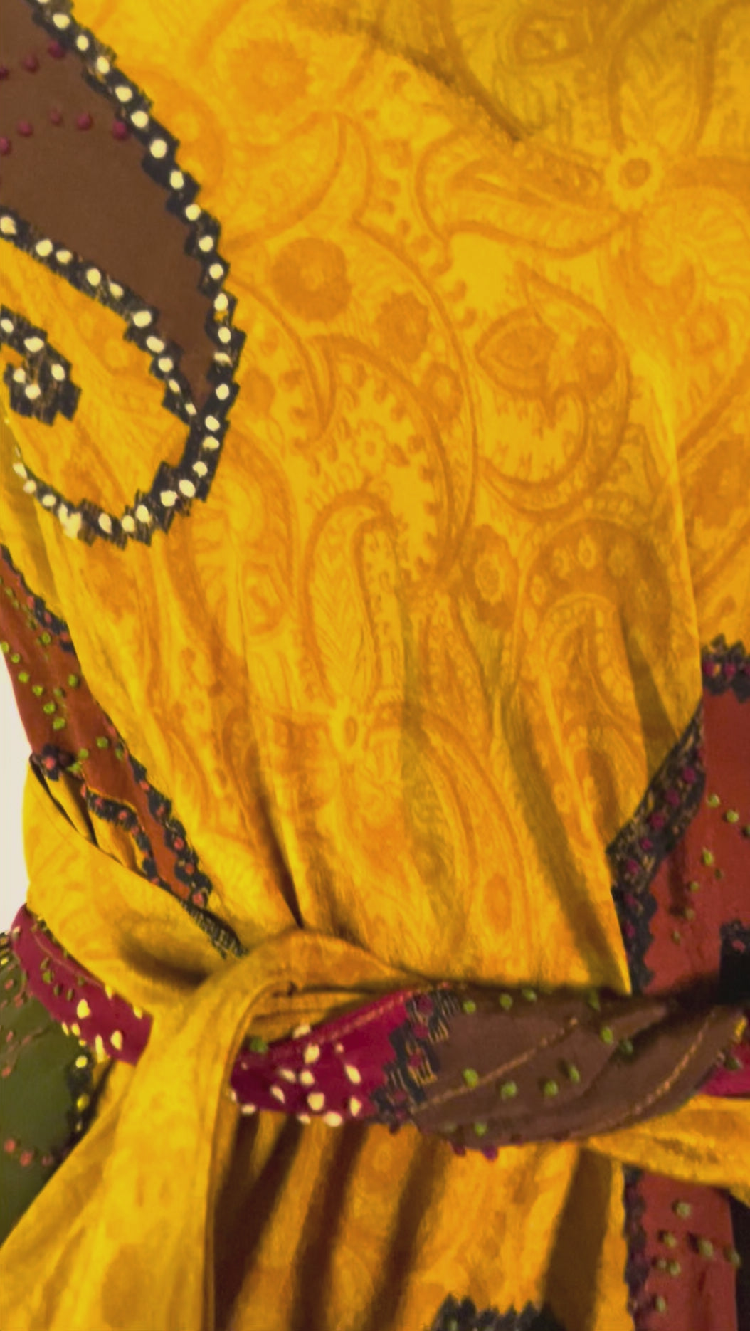 In Eastern philosophy, an Avatar is an incarnation that teaches how to evolve virtues of the past into the present. The Pure Upcycled Silk Avatar Collection is made from vintage pure silk saris, chosen and worn by women in the past to celebrate their lives.If you look very closely, you will see that the silks in this collection show some of the character of their previous incarnations through the appliqués that have been lovingly applied to bring new life to the fabric. This piece is a reminder that we are part of a collective journey to which we all add a little something.