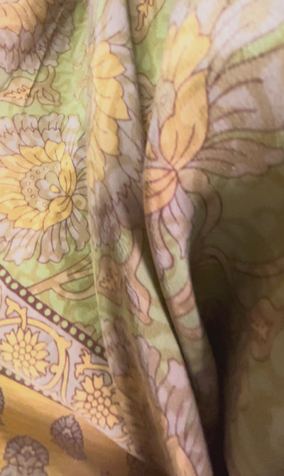 In Eastern philosophy, an Avatar is an incarnation that teaches how to evolve virtues of the past into the present. The Pure Upcycled Silk Avatar Collection is made from vintage pure silk saris, chosen and worn by women in the past to celebrate their lives.If you look very closely, you will see that the silks in this collection show some of the character of their previous incarnations through the appliqués that have been lovingly applied to bring new life to the fabric. This piece is a reminder that we are part of a collective journey to which we all add a little something.