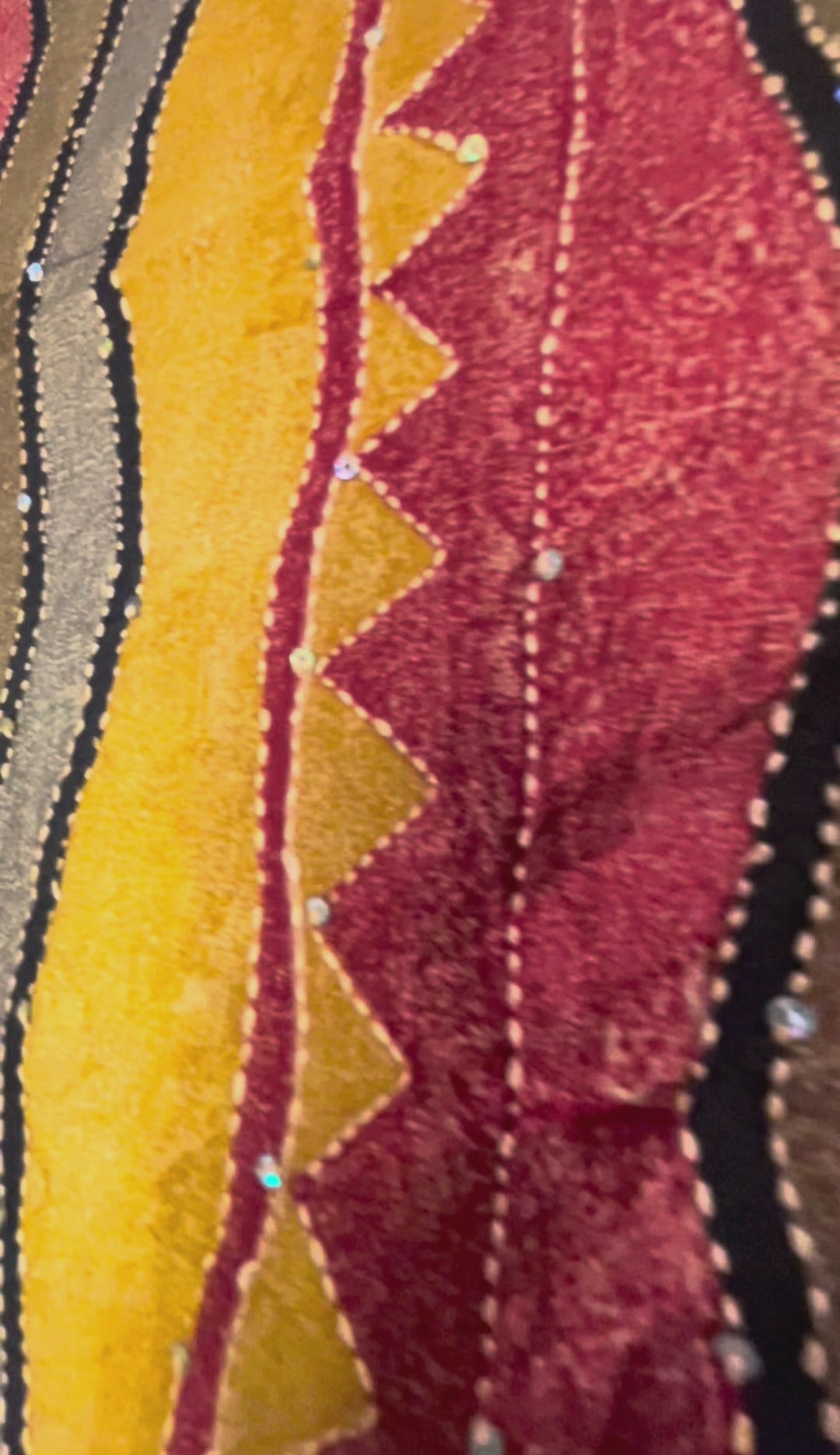In Eastern philosophy, an Avatar is an incarnation that teaches how to evolve virtues of the past into the present. The Pure Upcycled Silk Avatar Collection is made from vintage pure silk saris, chosen and worn by women in the past to celebrate their lives.If you look very closely, you will see that the silks in this collection show some of the character of their previous incarnations through the appliqués that have been lovingly applied to bring new life to the fabric. This piece is a reminder that we are part of a collective journey to which we all add a little something.