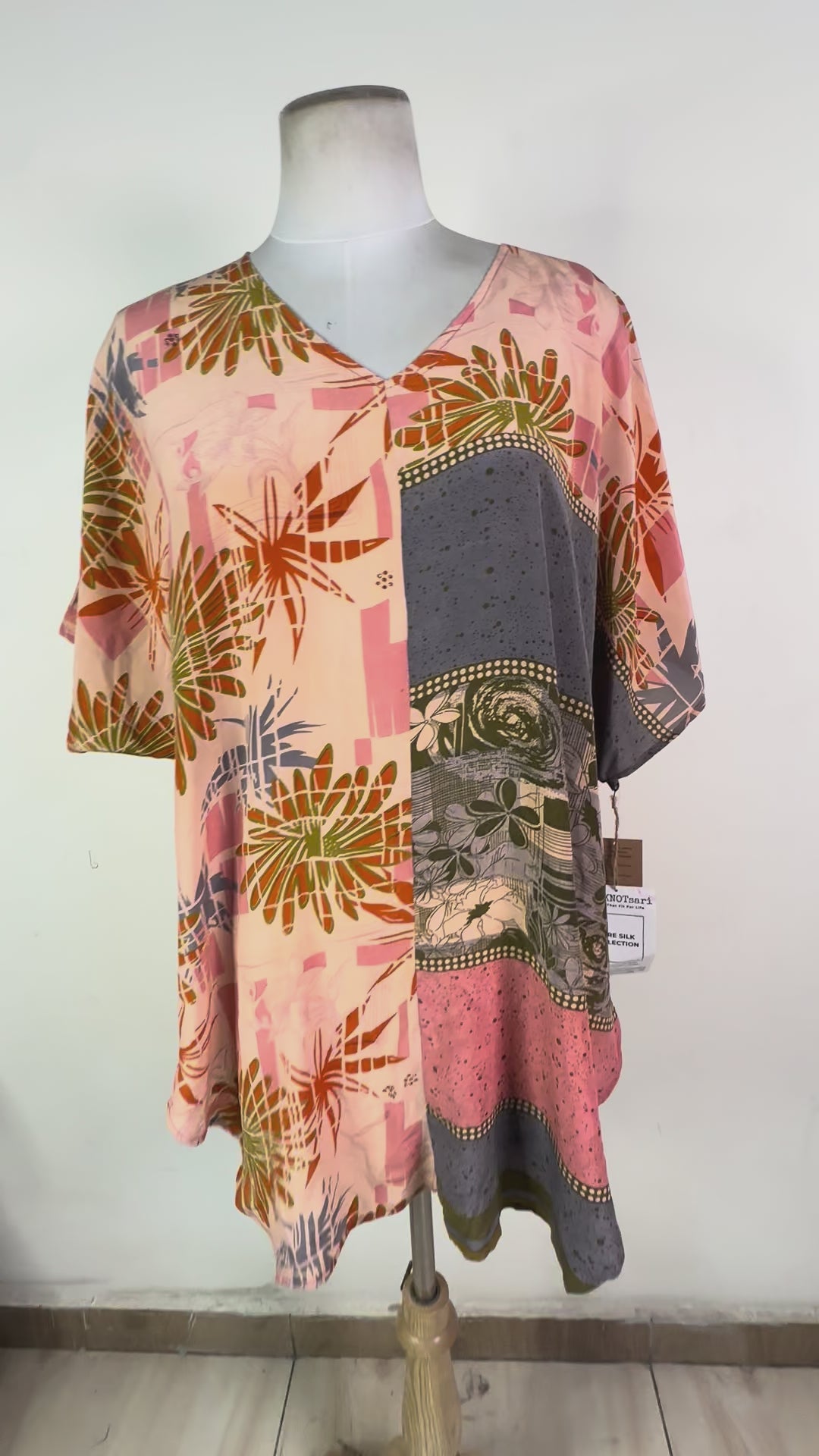 Sometimes you can see the sari-maker’s brand stamp on a piece of silk that we have transformed into another type of garment. We think the brand stamps are charming and that they don’t detract from our products, but because we also sell our clothing to boutiques around the world, we pull these “branded” products and add them to our wabi sabi or “perfectly imperfect” collection. Generally, if the piece you are interested in has a brand tag, you will be able to see its exact location in the product video.