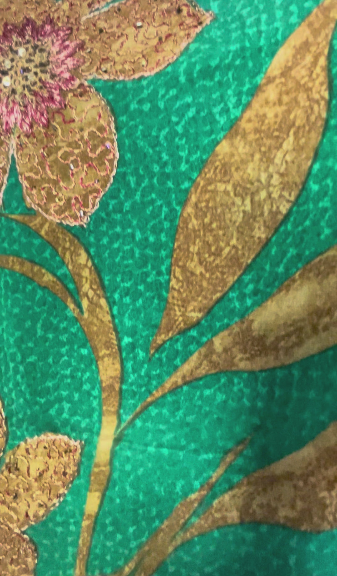 This midi-length kaftan brings style and sophistication to any occasion, from weddings to a beach day. Crafted from luxurious upcycled silk saris, the fabric has a beautiful flowing shape that flatters all body types. This kaftan dress can be worn as a single piece, or styled with pants for a fresh look. It's a one-size-fits-most item, so be sure to check the sizing chart for detailed measurements.