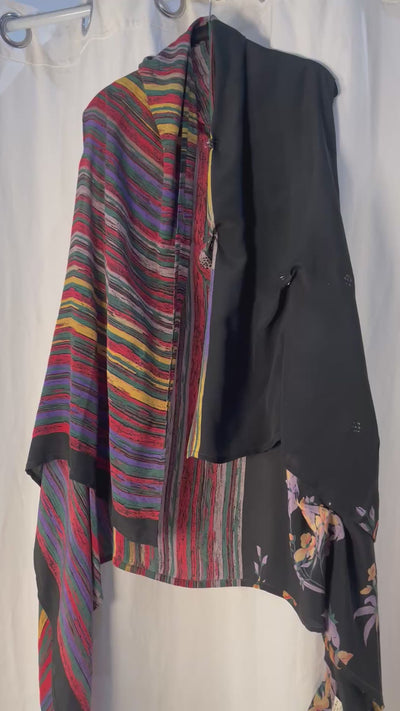 Our vests come in a variety of patterns and textiles, making them a must-have for slow fashion fans. Not only can they be worn as a vest, but also as a scarf, jacket or top. This style is great for all body types. To discover the many ways you can wear your vest, check the Video tab below. One size that fits all, but the Product Measurements tab provides measurements that can help you be sure it's the perfect fit.