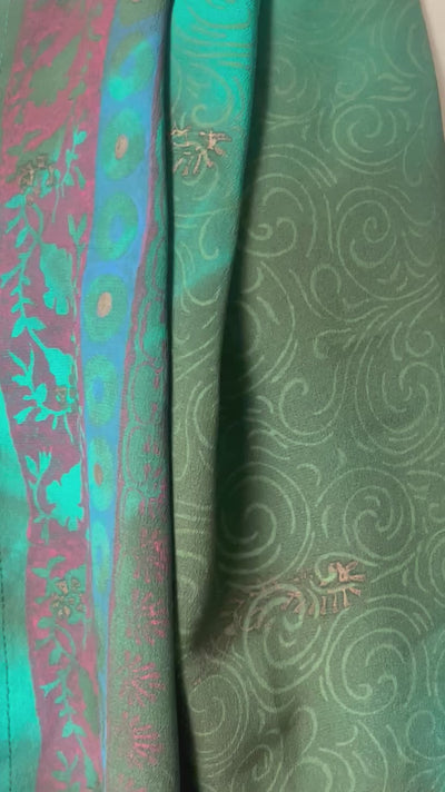 In Eastern philosophy, an Avatar is an incarnation that teaches how to evolve virtues of the past into the present. The Pure Upcycled Silk Avatar Collection is made from vintage pure silk saris, chosen and worn by women in the past to celebrate their lives.If you look very closely, you will see that the silks in this collection show some of the character of their previous incarnations through the appliqués that have been lovingly applied to bring new life to the fabric. This piece is a reminder that we are part of a collective journey to which we all add a little something.
