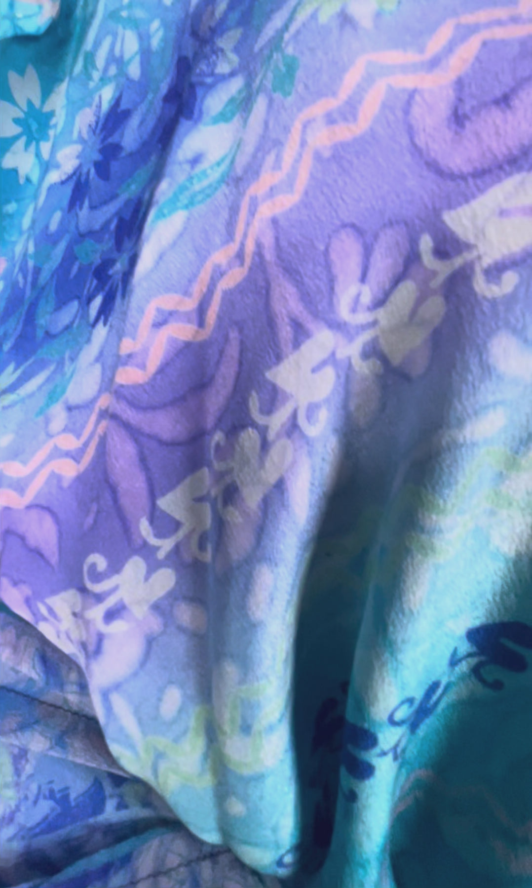 If you look very closely, you will see that the silks in this collection show some of the character of their previous incarnations through the appliqués that have been lovingly applied to bring new life to the fabric. This piece is a reminder that we are part of a collective journey to which we all add a little something.
