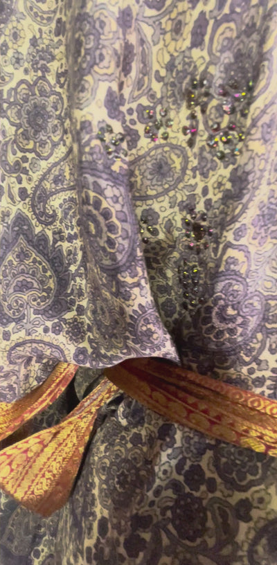 In Eastern philosophy, an Avatar is an incarnation that teaches how to evolve virtues of the past into the present. The Pure Upcycled Silk Avatar Collection is made from vintage pure silk saris, chosen and worn by women in the past to celebrate their lives.If you look very closely, you will see that the silks in this collection show some of the character of their previous incarnations through the appliqués that have been lovingly applied to bring new life to the fabric. This piece is a reminder that we are part of a collective journey to which we all add a little something.