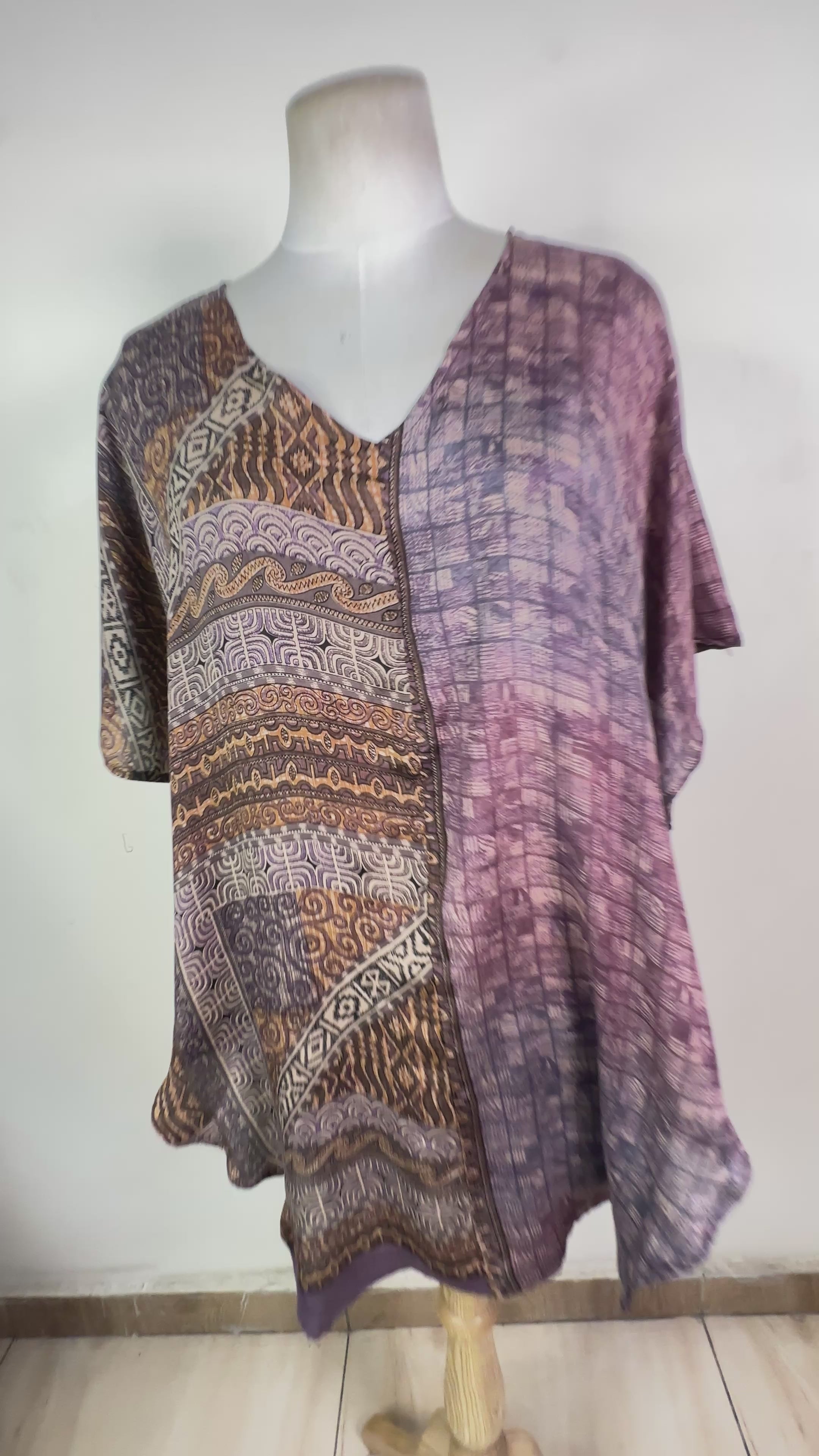 In order to extend the life of our gorgeous silks, we use small patches to camouflage the unavoidable fabric issues that arise from using upcycled fabrics. Most of our regularly-priced pieces will have some patching, but if there is more patching than we think is reasonable or if the patching is combined with another fabric issue, we will add the piece to our wabi sabi collection. Patching can be mild, moderate or significant. Please see the images and video attached to the wabi sabi piece that interests you for patches on that particular piece.