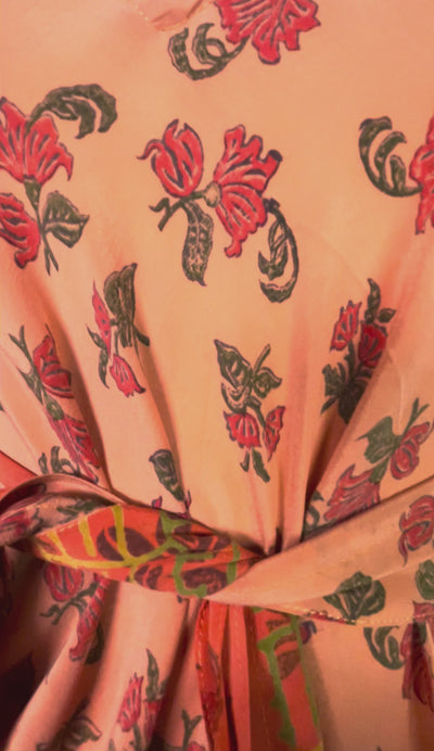 If you look very closely, you will see that the silks in this collection show some of the character of their previous incarnations through the appliqués that have been lovingly applied to bring new life to the fabric. This piece is a reminder that we are part of a collective journey to which we all add a little something.