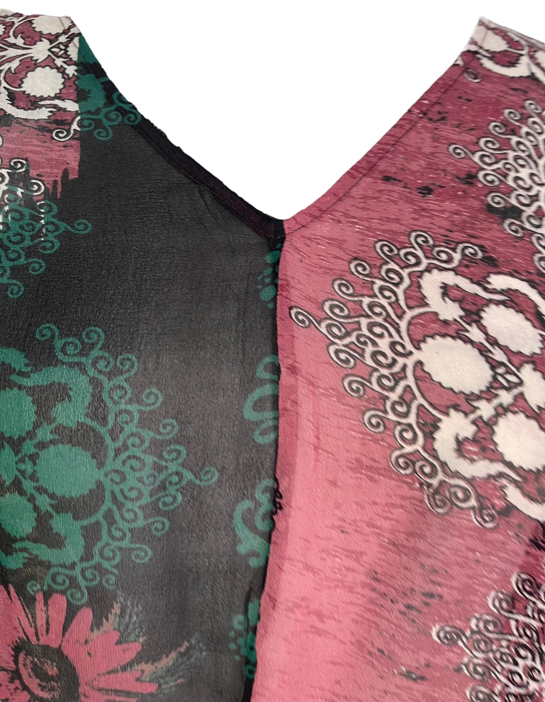 In Eastern philosophy, an Avatar is an incarnation that teaches how to evolve virtues of the past into the present. The Pure Upcycled Silk Avatar Collection is made from vintage pure silk saris, chosen and worn by women in the past to celebrate their lives.If you look very closely, you will see that the silks in this collection show some of the character of their previous incarnations through the appliqués that have been lovingly applied to bring new life to the fabric. This piece is a reminder that we are part of a collective journey to which we all add a little something.