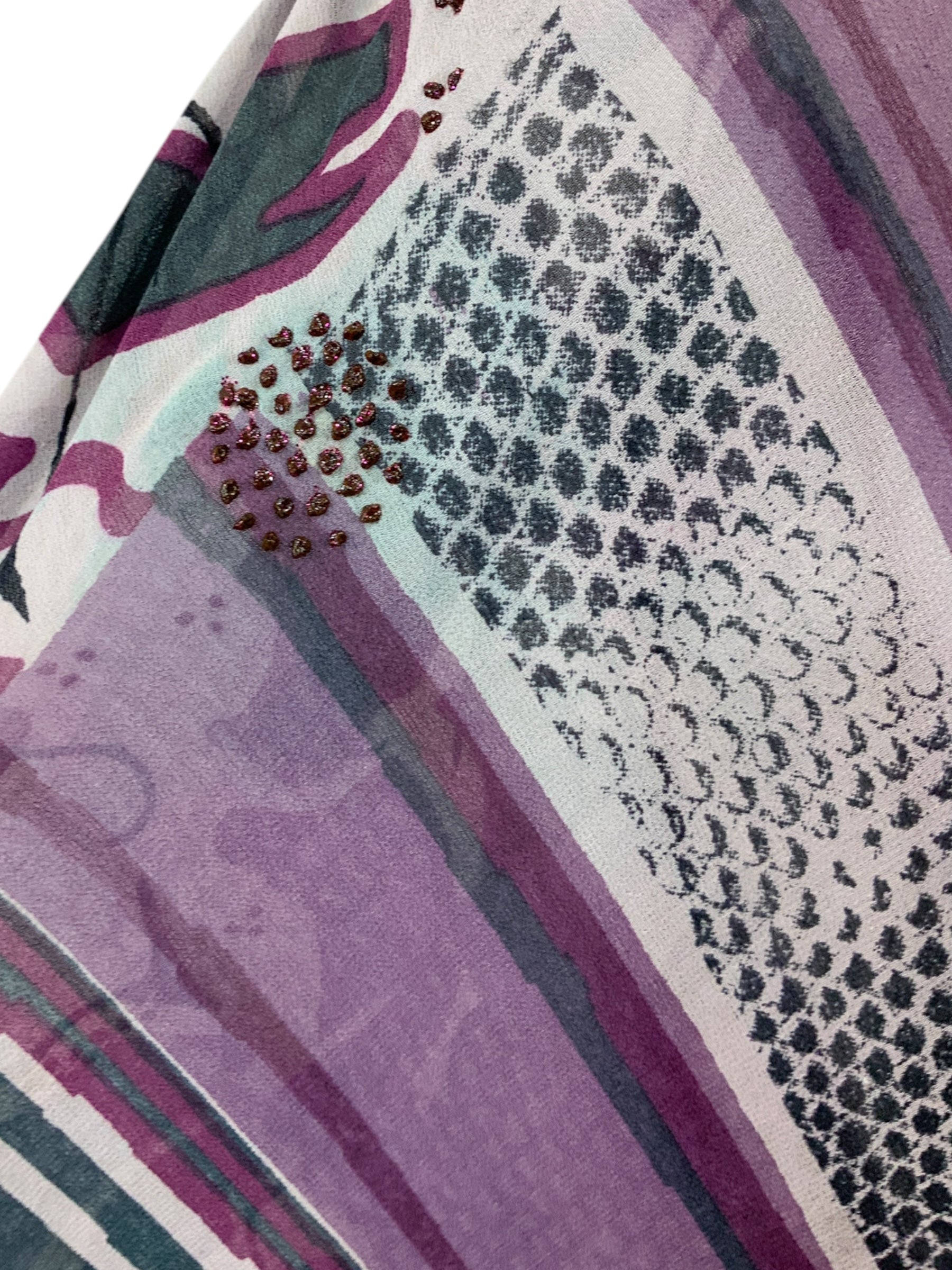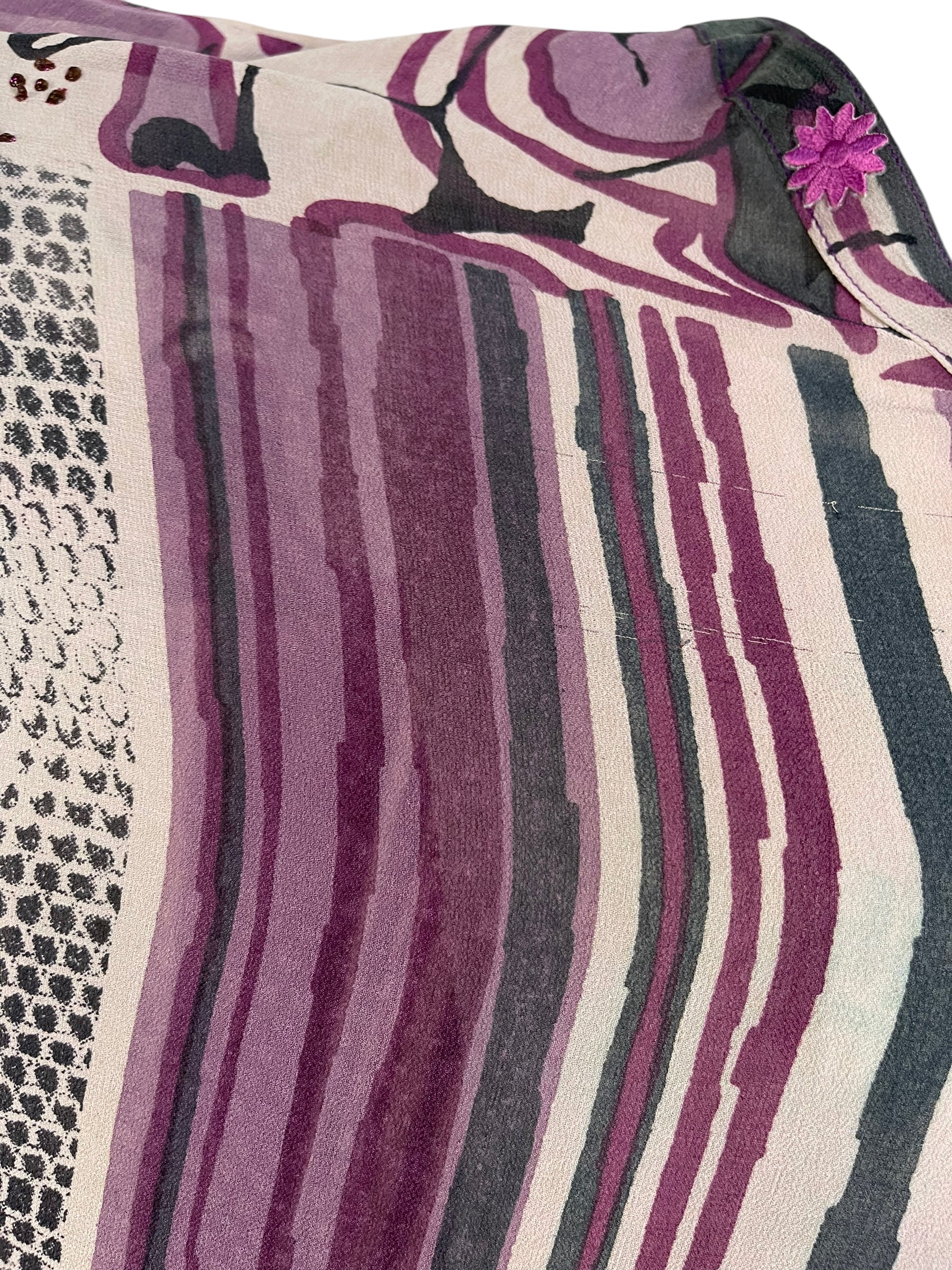 In Eastern philosophy, an Avatar is an incarnation that teaches how to evolve virtues of the past into the present. The Pure Upcycled Silk Avatar Collection is made from vintage pure silk saris, chosen and worn by women in the past to celebrate their lives. If you look very closely, you will see that the silks in this collection show some of the character of their previous incarnations through the appliqués that have been lovingly applied to bring new life to the fabric. This piece is a reminder that we are part of a collective journey to which we all add a little something.