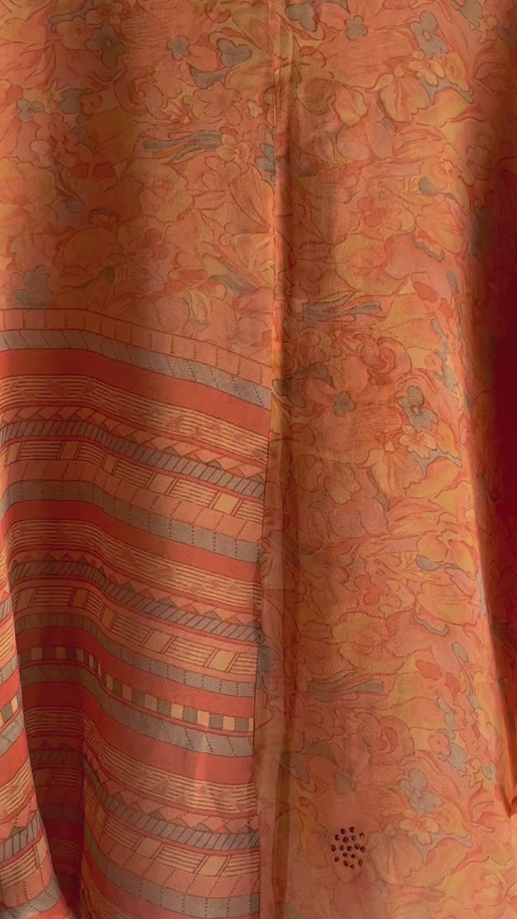 In Eastern philosophy, an Avatar is an incarnation that teaches how to evolve virtues of the past into the present. The Pure Upcycled Silk Avatar Collection is made from vintage pure silk saris, chosen and worn by women in the past to celebrate their lives.If you look very closely, you will see that the silks in this collection show some of the character of their previous incarnations through the appliqués that have been lovingly applied to bring new life to the fabric. This piece is a reminder that we are part of a collective journey to which we all add a little something.