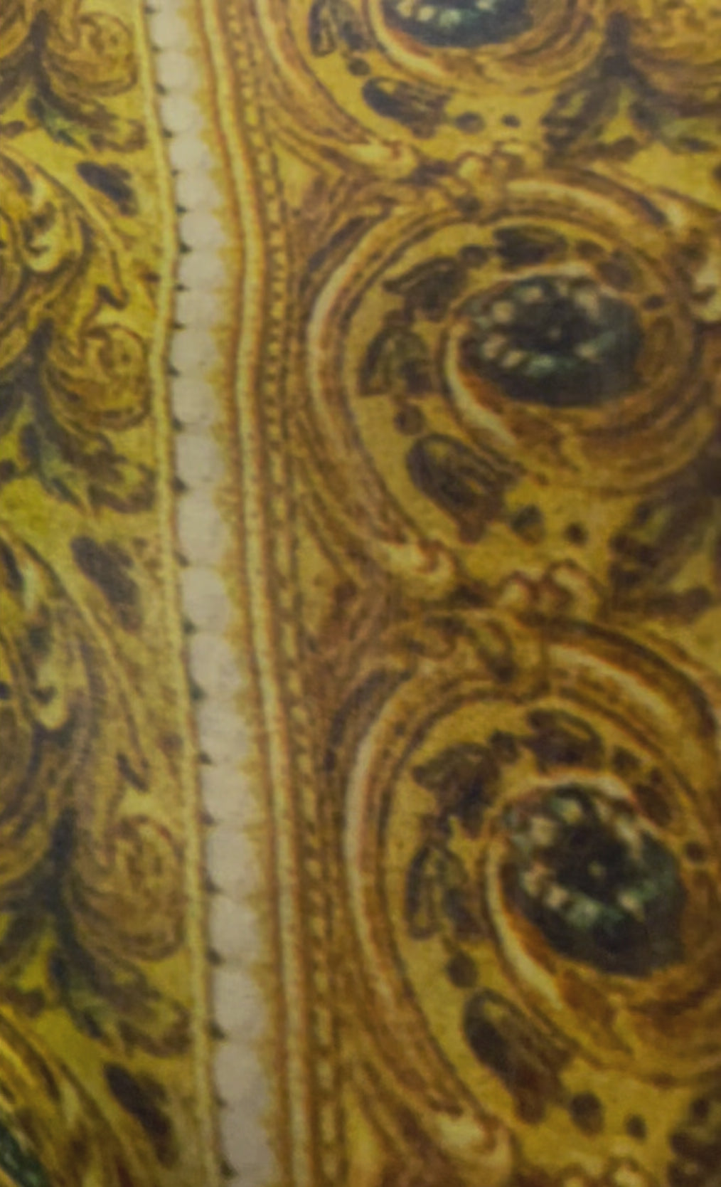 - Place the silk fabric with the area to be patched in a single layer on the white cotton.