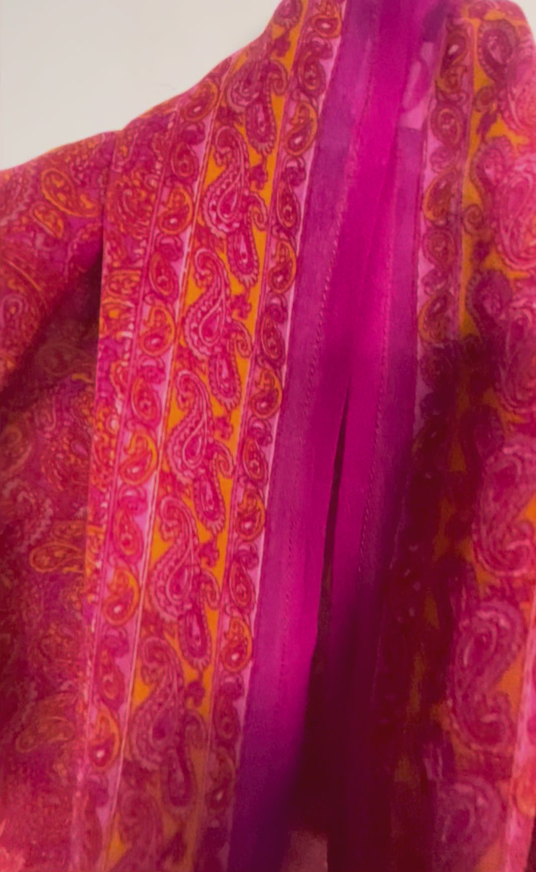 In Eastern philosophy, an Avatar is an incarnation that teaches how to evolve virtues of the past into the present. The Pure Upcycled Silk Avatar Collection is made from vintage pure silk saris, chosen and worn by women in the past to celebrate their lives.If you look very closely, you will see that the silks in this collection show some of the character of their previous incarnations through the appliqués that have been lovingly applied to bring new life to the fabric. This piece is a reminder that we are part of a collective journey to which we all add a little something.