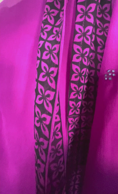 In Eastern philosophy, an Avatar is an incarnation that teaches how to evolve virtues of the past into the present. The Pure Upcycled Silk Avatar Collection is made from vintage pure silk saris, chosen and worn by women in the past to celebrate their lives.If you look very closely, you will see that the silks in this collection show some of the character of their previous incarnations through the appliqués that have been lovingly applied to bring new life to the fabric. This piece is a reminder that we are part of a collective journey to which we all add a little something.