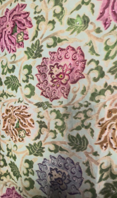 What Makes This Fabric So Special?*- Colour Story – amethyst purple, sapphire blue, amber orange, jade green, ruby red, mahogany brown and other subtle hues