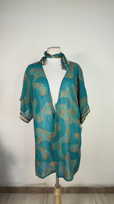 PRG8538 Sheer Wabi Sabi Pure Silk Kimono-Sleeved Jacket with Belt