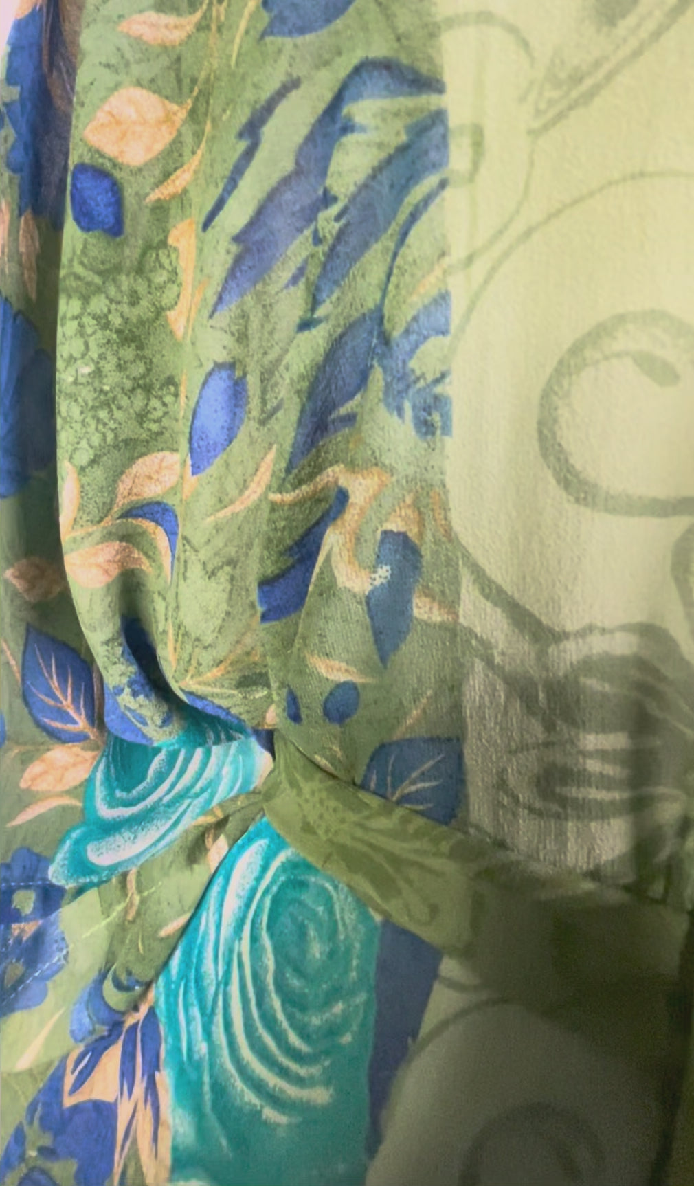 In Eastern philosophy, an Avatar is an incarnation that teaches how to evolve virtues of the past into the present. The Pure Upcycled Silk Avatar Collection is made from vintage pure silk saris, chosen and worn by women in the past to celebrate their lives.If you look very closely, you will see that the silks in this collection show some of the character of their previous incarnations through the appliqués that have been lovingly applied to bring new life to the fabric. This piece is a reminder that we are part of a collective journey to which we all add a little something.
