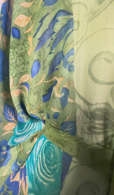 This ethereal, long, open-front duster with detachable belt offers endless styling options. Layer it over jeans, dresses, or swimwear; try it forwards or backwards, as a dress or as a jacket. The sleeves end at the elbow for a cropped wrap jacket look when tied in the front. It's the perfect piece of slow fashion for women 5'4'' and taller; if your frame is shorter, simply add knots to the hem for a personalized fit. Its versatile design also allows you to wear the duster forwards or backwards, or even upside down!