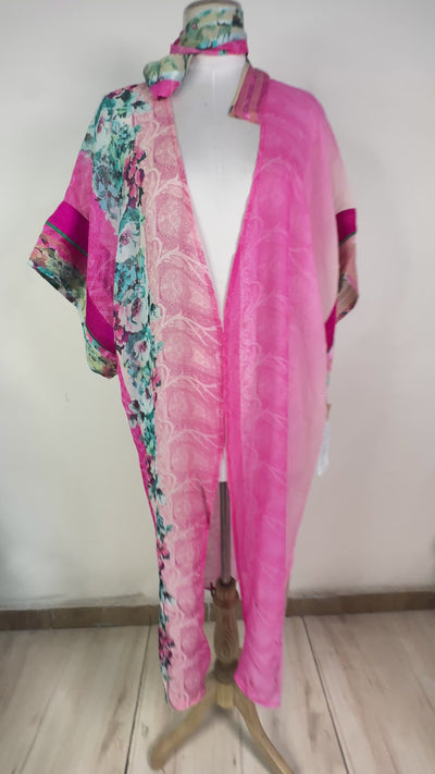 PRG8569 Sheer Wabi Sabi Pure Silk Kimono Sleeved Duster with Belt
