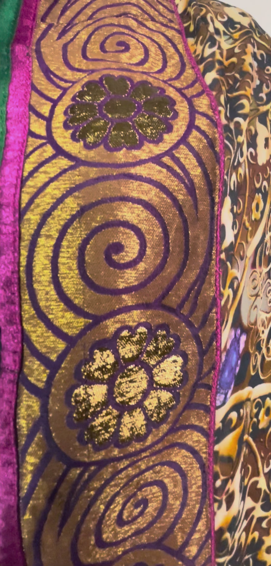 In Eastern philosophy, an Avatar is an incarnation that teaches how to evolve virtues of the past into the present. The Pure Upcycled Silk Avatar Collection is made from vintage pure silk saris, chosen and worn by women in the past to celebrate their lives.If you look very closely, you will see that the silks in this collection show some of the character of their previous incarnations through the appliqués that have been lovingly applied to bring new life to the fabric. This piece is a reminder that we are part of a collective journey to which we all add a little something.