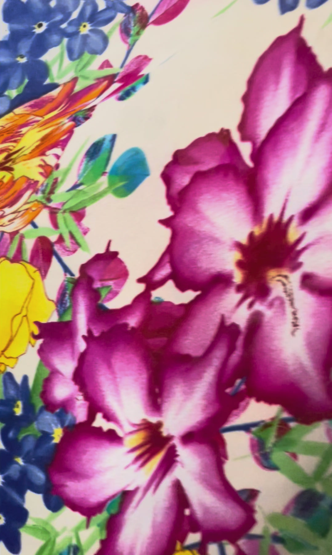 What Makes This Fabric So Special?*- Colour Story – amethyst purple, sapphire blue, amber orange, golden yellow, jade green, ivory white, ruby red and other subtle hues
