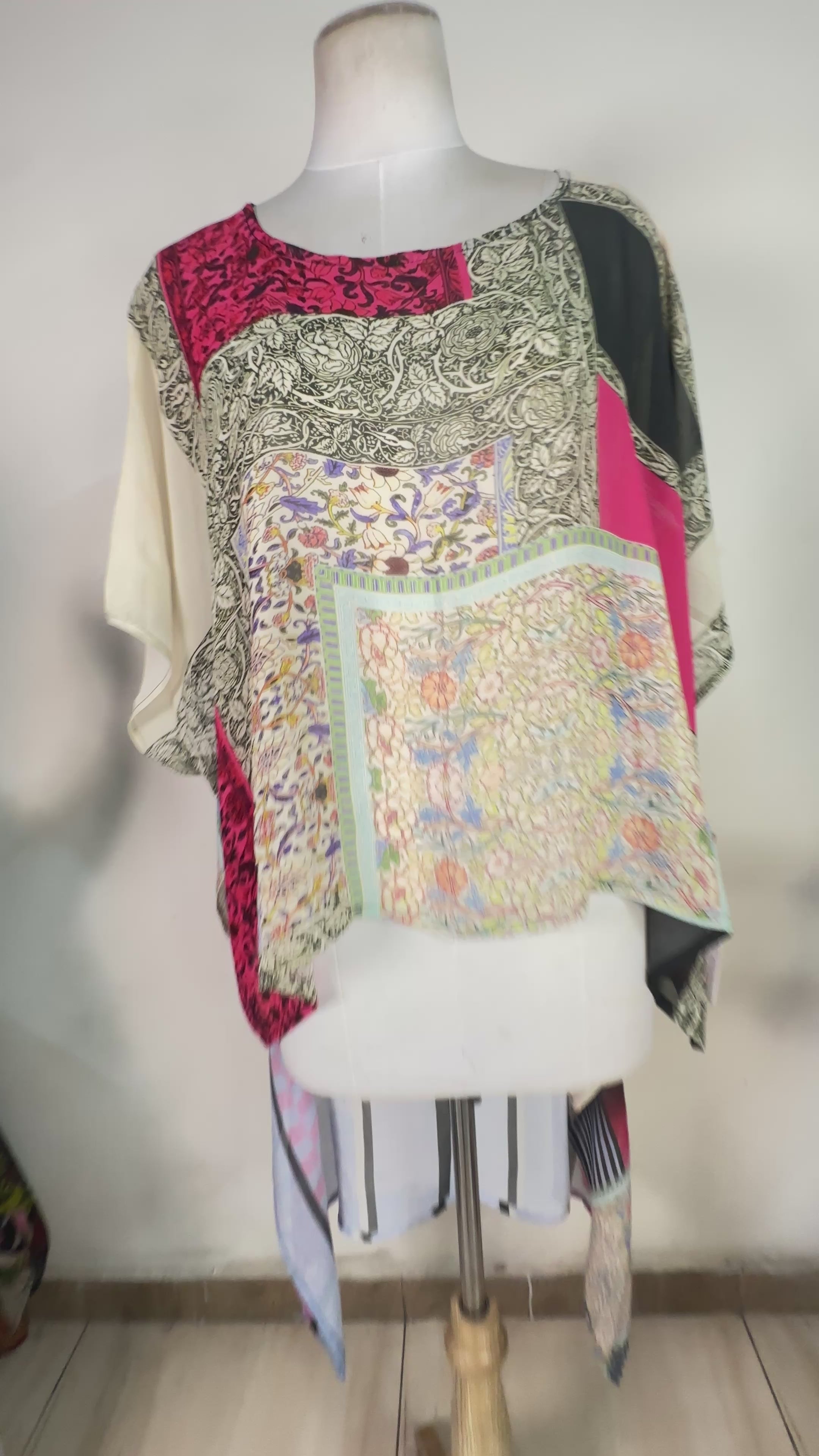 In order to extend the life of our gorgeous silks, we use small patches to camouflage the unavoidable fabric issues that arise from using upcycled fabrics. Most of our regularly-priced pieces will have some patching, but if there is more patching than we think is reasonable or if the patching is combined with another fabric issue, we will add the piece to our wabi sabi collection. Patching can be mild, moderate or significant. Please see the images and video attached to the wabi sabi piece that interests you for patches on that particular piece.