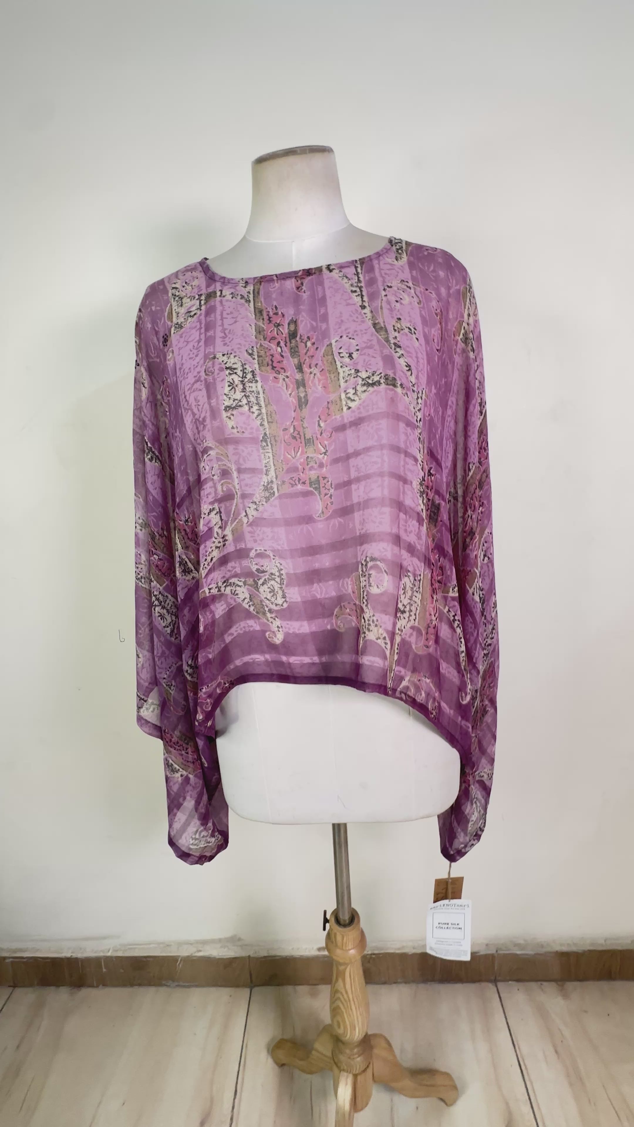 Our sheer garments are made with pure silk georgette or pure silk chiffon saris. The remainder of our silk items are made with a strong pure silk crepe.