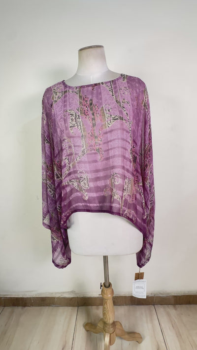PRG8770 Sheer Wabi Sabi Pure Silk Kimono-Sleeved Top