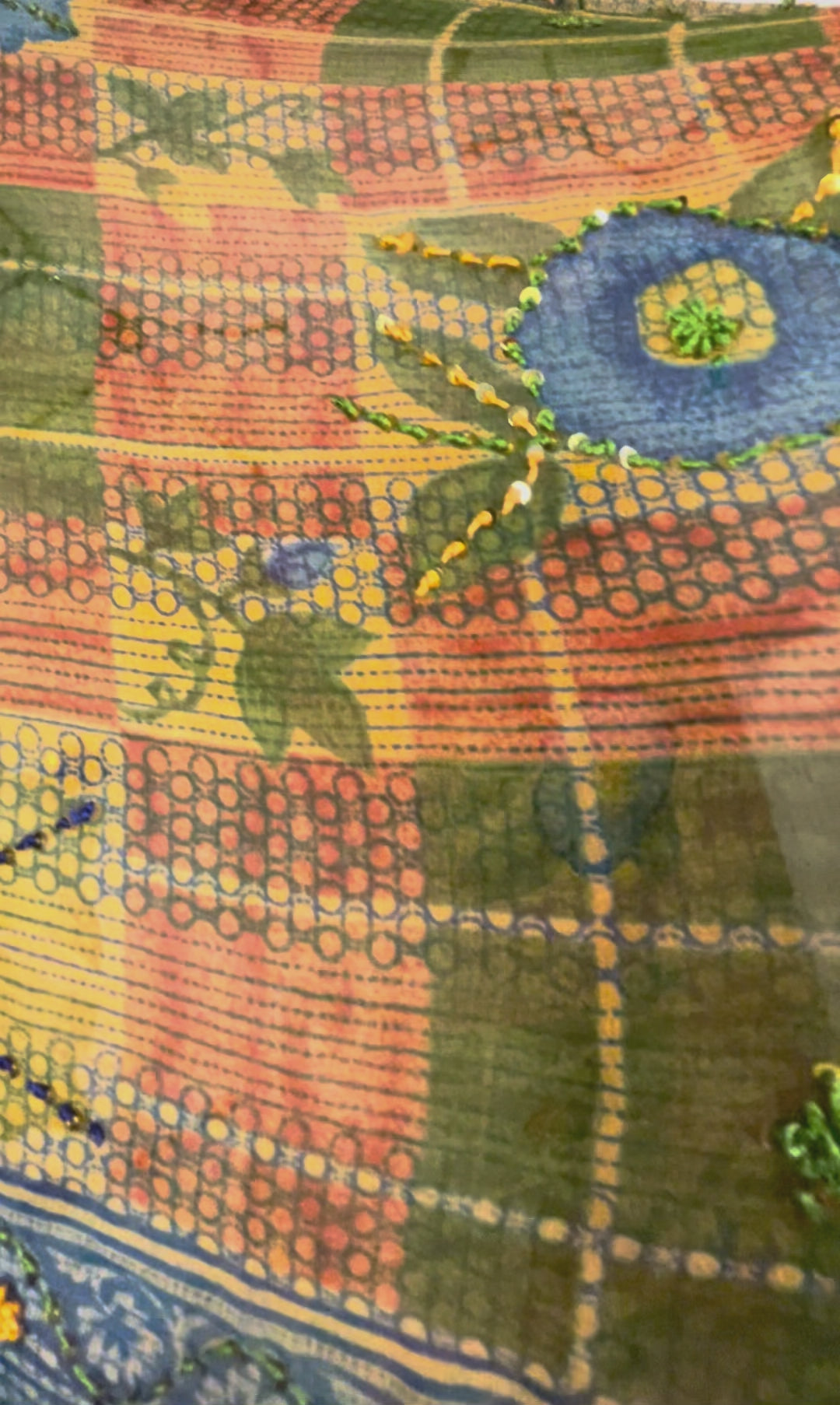 If you look very closely, you will see that the silks in this collection show some of the character of their previous incarnations through the appliqués that have been lovingly applied to bring new life to the fabric. This piece is a reminder that we are part of a collective journey to which we all add a little something.